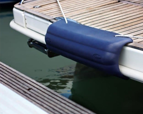 - La défense de jupe ou de poupe : adaptée à la forme de la poupe, elle est particulièrement utile dans les ports du Sud où l’amarrage se fait en pendille, arrière vers le ponton.