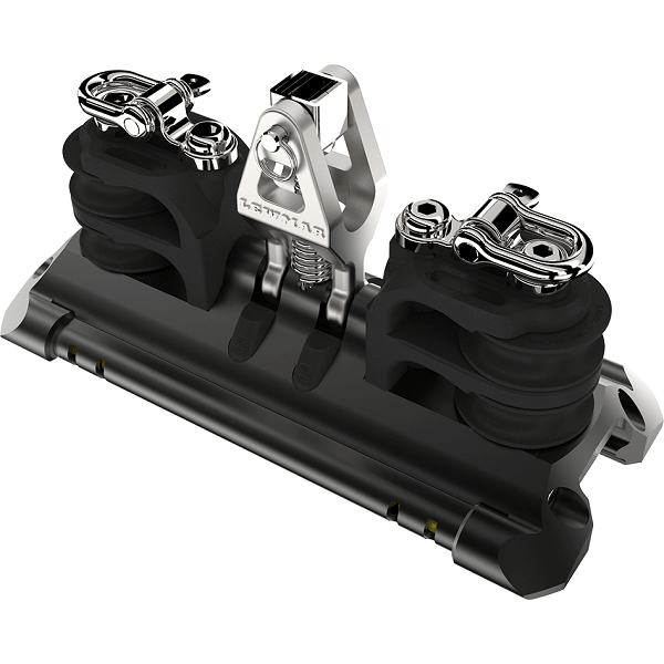 Le chariot de grand-voile Lewmar NTR T1, monté sur billes Torlon, avec cardan et 4 réas de contrôle, est conçu pour les réglages fins et les montages de palan. Il offre une glisse régulière et un guidage propre des bouts.