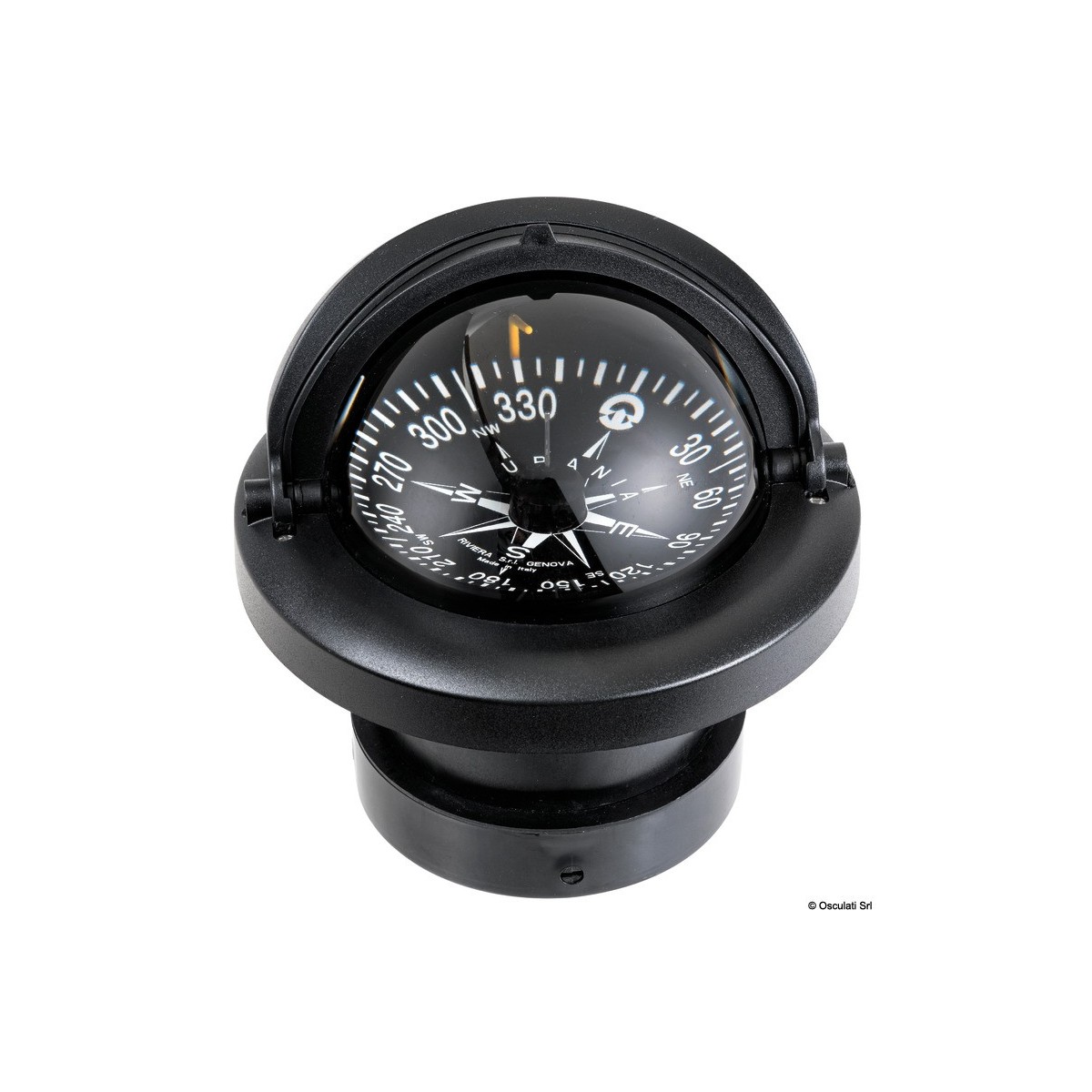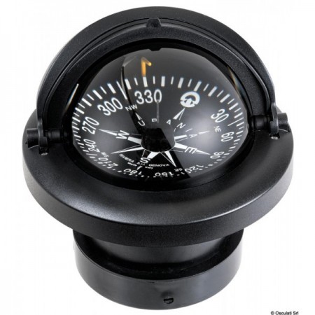 Le compas Riviera Urania 4" (BU8) est un modèle encastrable conçu pour les basses et grandes vitesses. Il intègre une suspension interne, un écran anti-reflet, un éclairage 12 V et un réglage de compensation intégré. Sa rose plate noire de 100 mm graduée tous les 5° permet une lecture arrière claire via une ligne de foi rouge, idéale pour une navigation précise.