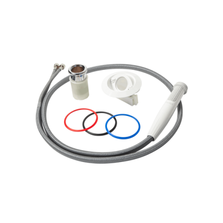 La douchette est livré avec un support droit chromé ou incliné et ne posède pas de pas de couvercle grâce à son bouchon Deck Protect.