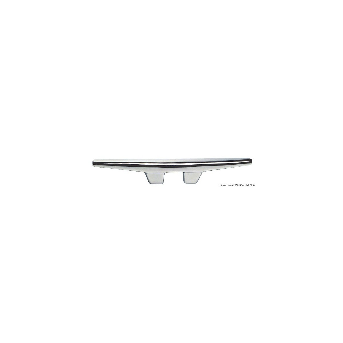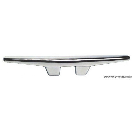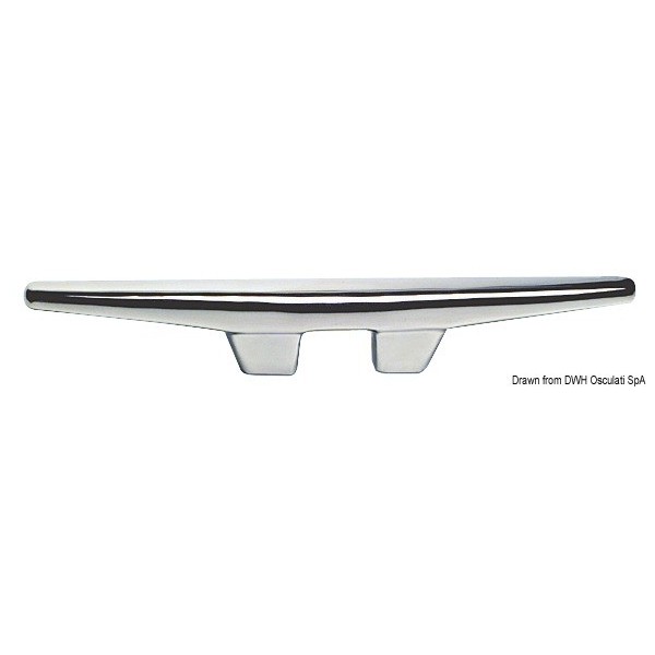 Élégant taquet en inox poli miroir OSCULATI, longueur 450 mm, idéal en proue ou poupe pour l’amarrage du voilier ou de la vedette. Doté de 2 goujons ø 16 mm, il assure une fixation solide et un large appui pour les aussières.