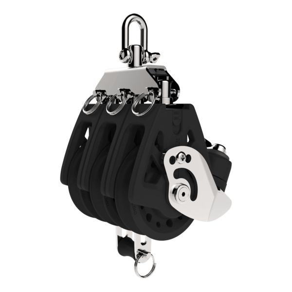 - Poulie triple 50 mm avec ringot et taquet intégrés