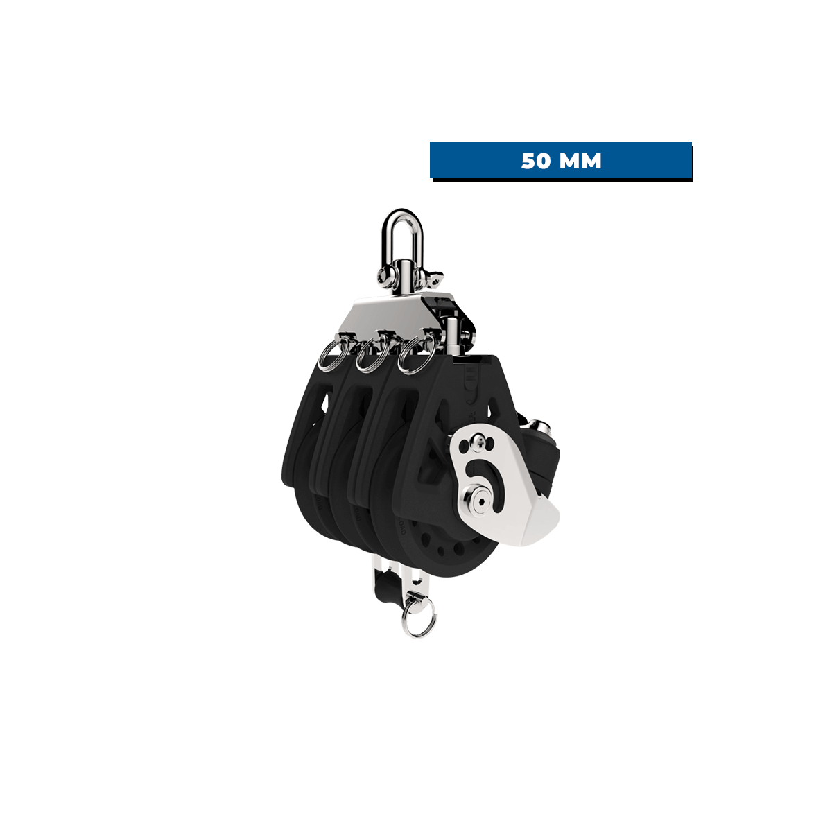 Cette version triple en 50 mm, avec ringot et taquet intégrés, est conçue pour encaisser 450 kg de charge de travail côté poulie, tout en offrant 120 kg côté taquet. Un duo idéal pour un accastillage fiable et durable à bord, avec un contrôle précis des réglages.