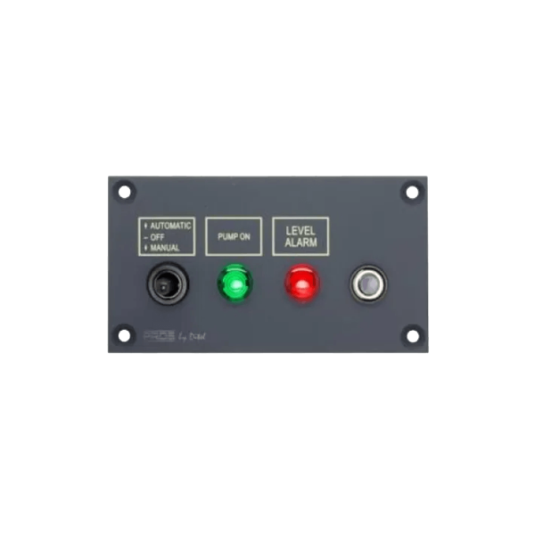 Le module de contrôle de pompe de cale PROS by Ditel permet de piloter une pompe en 12/24 V avec une intensité admissible de 15 A. Il intègre un interrupteur auto-off-manuel, un voyant vert de fonctionnement, un voyant rouge d'alarme de niveau et un fusible thermique réarmable, pour une gestion claire, fiable et sécurisée de la pompe à bord.