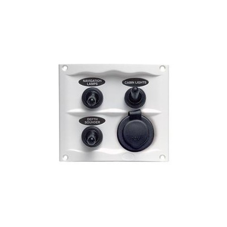 Tableau électrique à commutateurs 3 interrupteurs 20A + allume-cigare IP56 noir