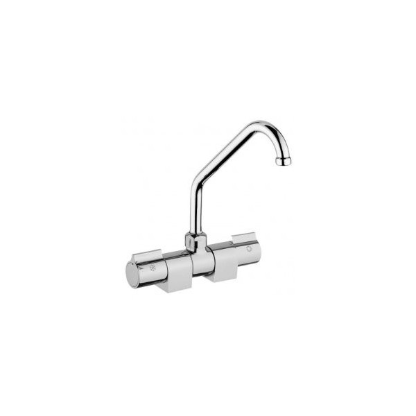 Robinet double. Mélangeur laiton chromé luxe, bec rabattable Ø14mm H182mm L142,6mm Filetage 3/8M.