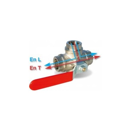 Vanne 3 voies PN40. Corps en laiton nickelé et levier en acier plastifié.