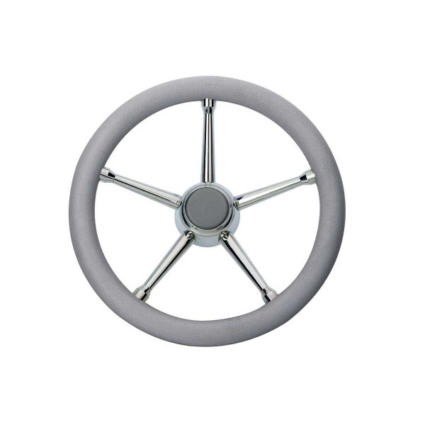 Le volant T17 Ø 35 cm en polyuréthane gris et avec 5 branches en inox s'intègrera parfaitement à votre console de pilotage.