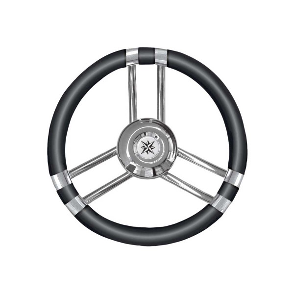 Le volant T21 est doté de trois branches en inox et d'une couronne noire de Ø 35 cm en polyuréthane souple pour une meilleure tenue et une résistance marine.